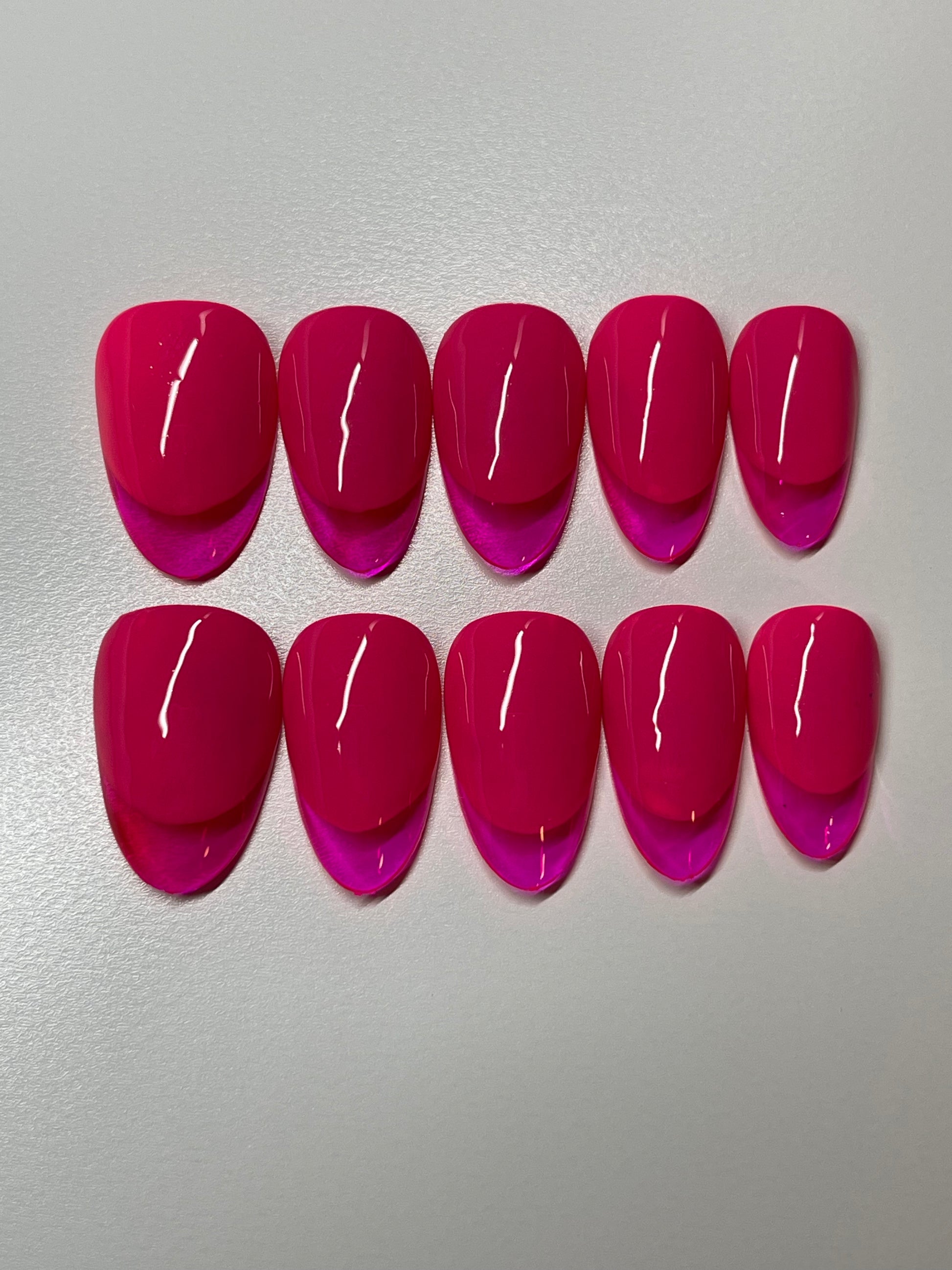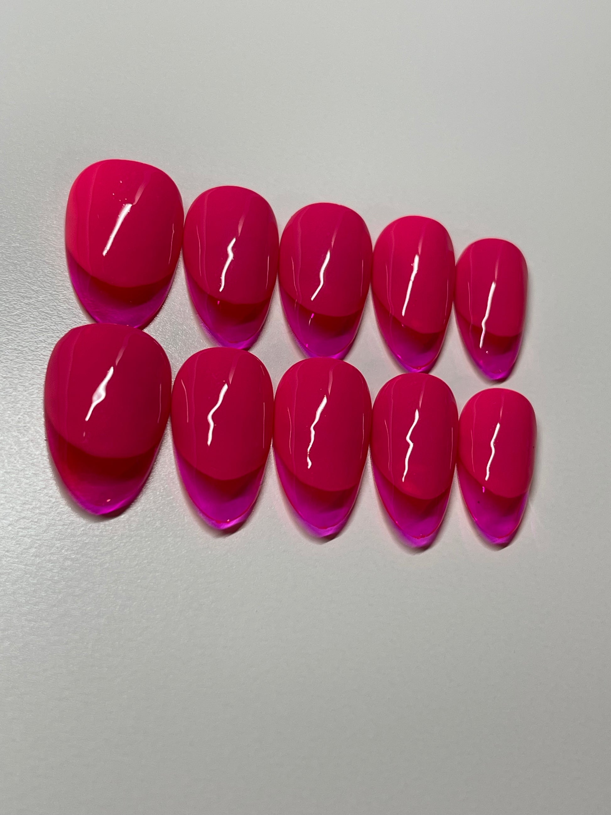 Want French nails... but elevated? Get the perfect blend of bold Barbie pink and classic French tips with these stunning press-on nails! These semi-transparent French tip nails feature a hot pink base with a semi-pink transparent tip for a modern twist on the timeless French manicure. Whether you’re heading to a party, a date, or just want a fun pop of color, these nails deliver high-shine, long-lasting wear without salon visits.
